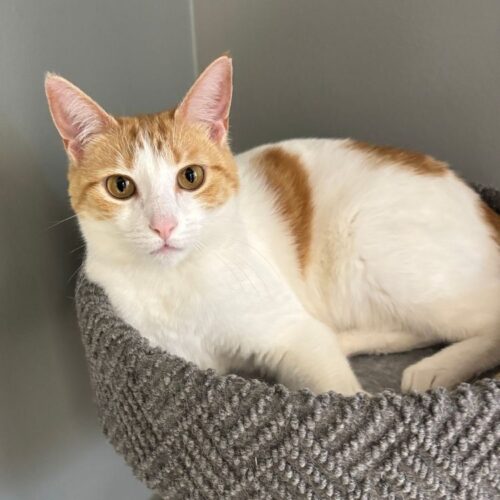 Arabella is pretty independent so we think she'd be happy in a home on her own, if she isn’t left alone for long periods of time, but she also does get along with the other cats at the Adoption Center.
