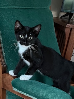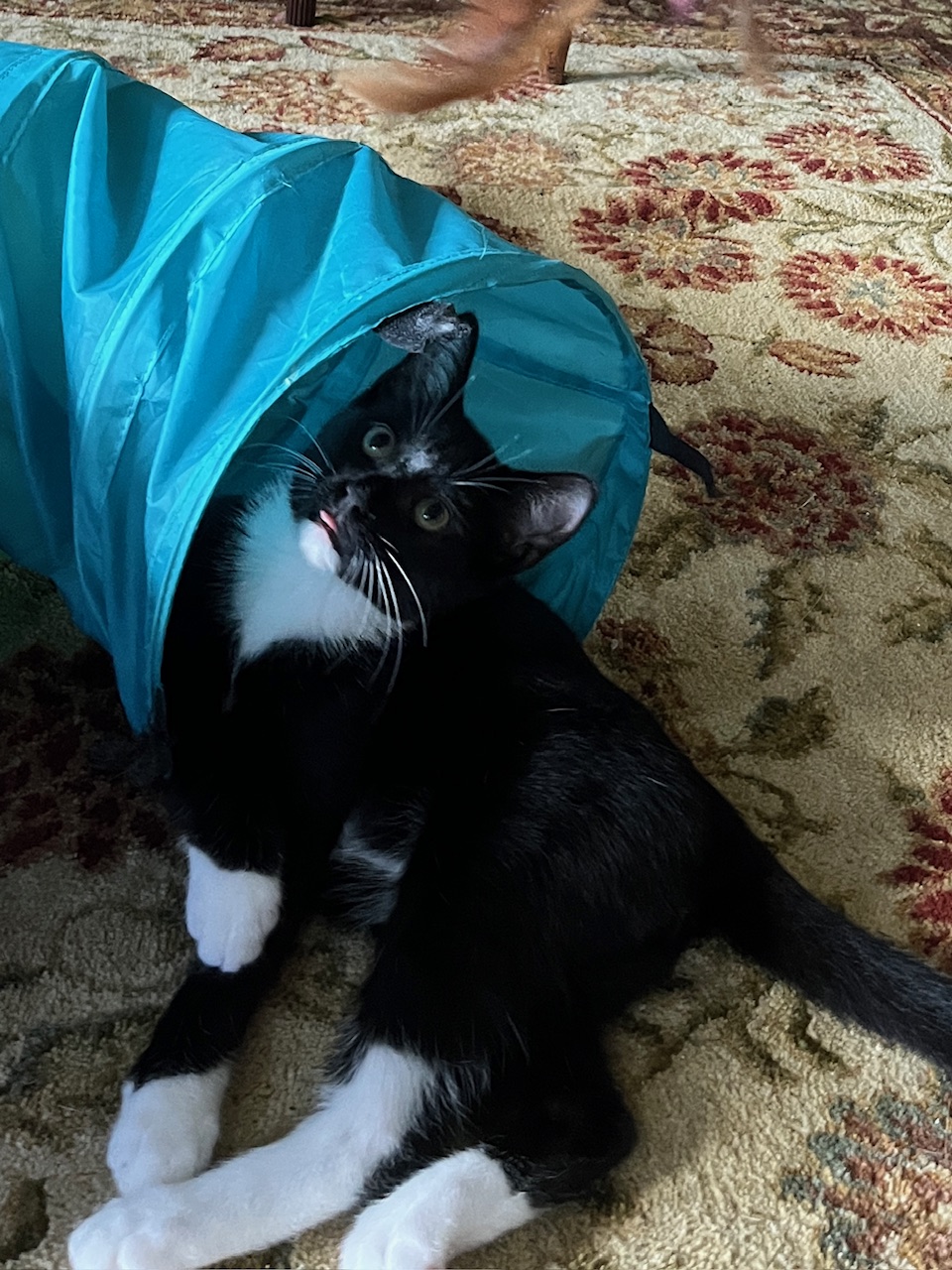 Meet Buster. He is a sweet, smart boy who came to us with two brothers, Sugar and Georgie. He is a good eater and uses his litter box and scratching posts very well. He can be a little shy at first, but once he gets to know you, he is a snuggle bug. He loves to play with his brothers and toys. He is very fond of his brother Sugar.