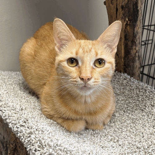 Buttercup (DOB 5/1/23) is a beautiful orange tabby/Siamese. She is part of the Powerpuff trio (alongside her friends Bubbles and Blossom). Buttercup is just like her namesake, tough on the outside, a marshmallow on the inside. Buttercup may hang back at first, keeping her cool and surveying the scene. But once she’s decided you're worthy, she rewards you with deep, rumbling purrs and fierce loyalty. Her superpower? Eating anything in her path—no treat is safe when Buttercup's around. She's got the grit and the appetite of a true powerhouse.