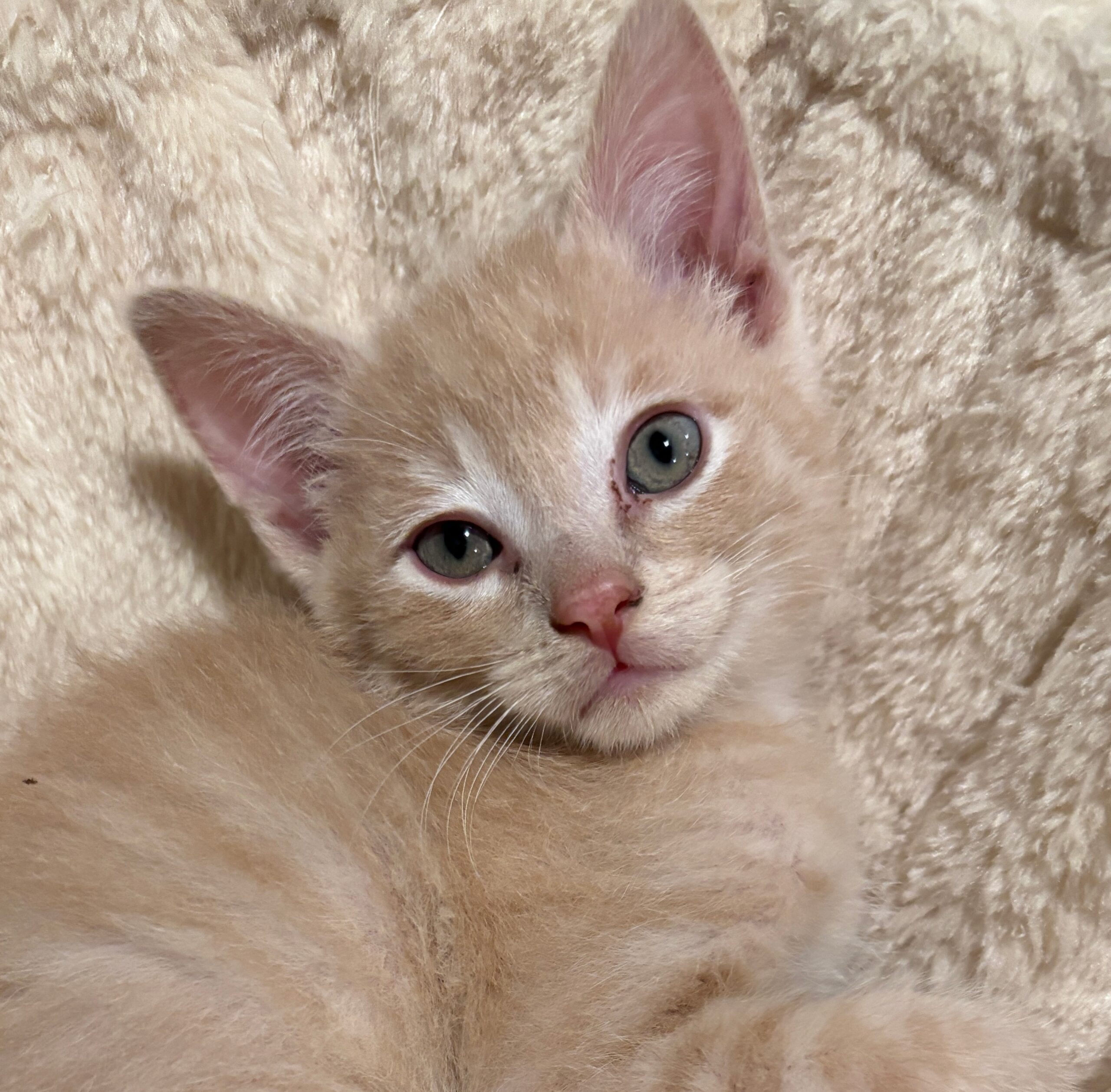 Cheddar is a handsome male buff tabby kitten born on April 30, 2025. He’s the biggest in the bunch—but don’t let his size fool you! He’s a big softie at heart. This sweet boy is a little babyish in the best way—loving, gentle, and always ready for cuddles. He especially enjoys zooming through the cat tunnel and playing with his littermates.