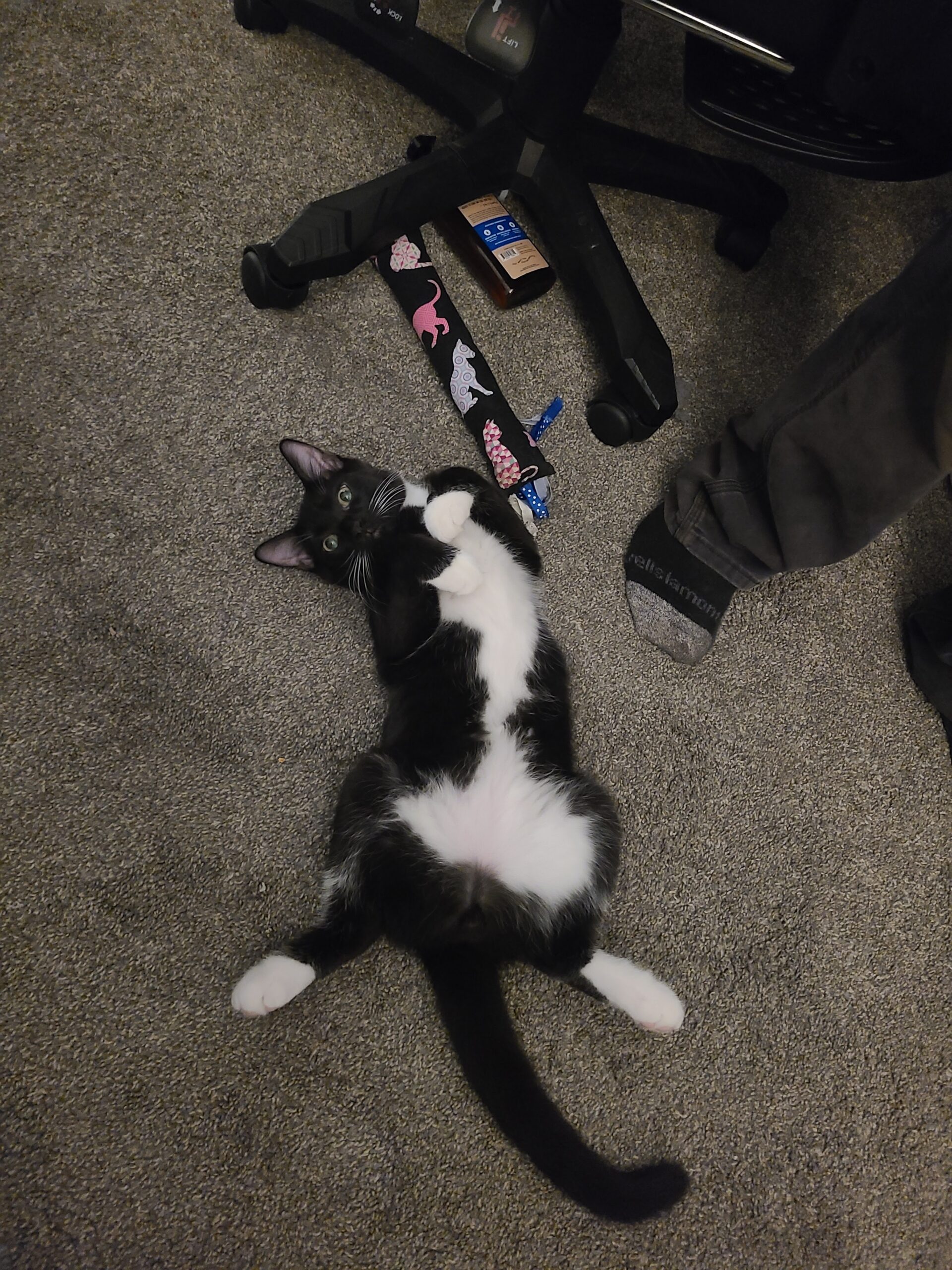 Dust Mite is a very sweet boy that's come a long way, from being shy and unsure to being confident and playful. He adores getting pets and loves to play with a wand toy. Although he dislikes being carried he would make a great addition to a cat only household
