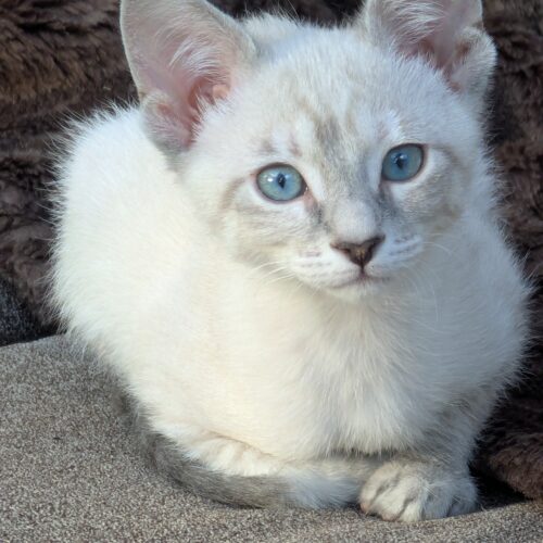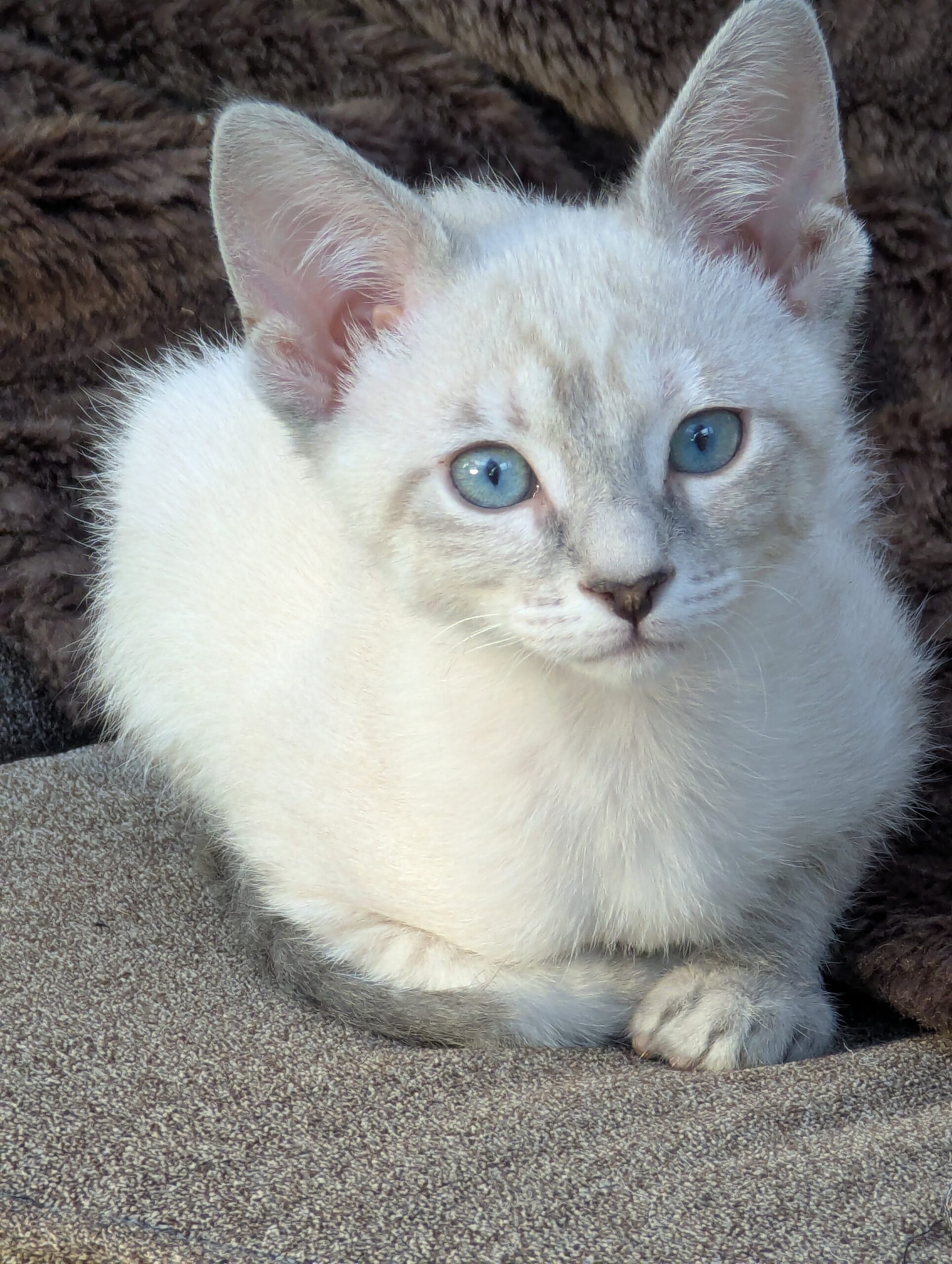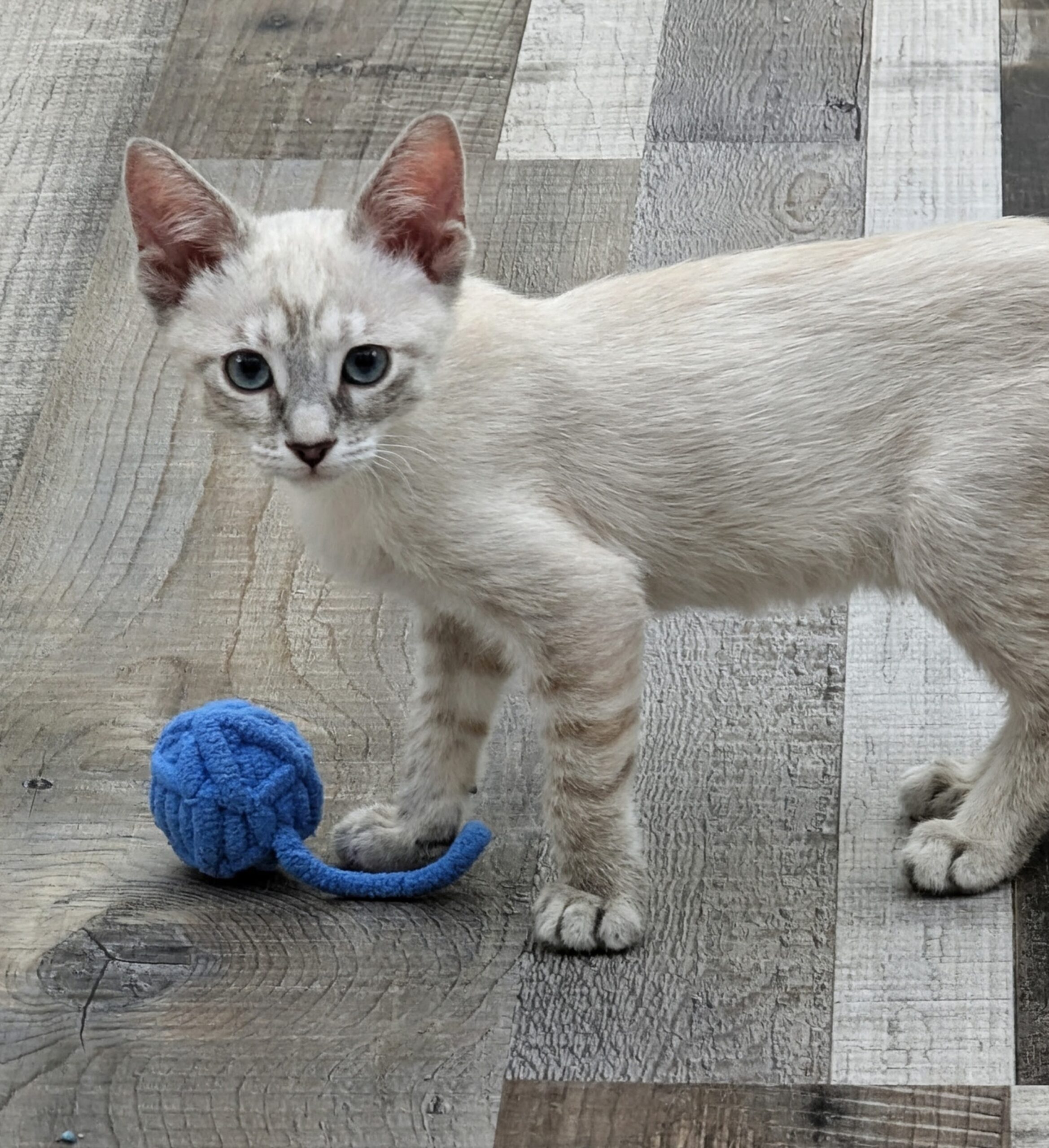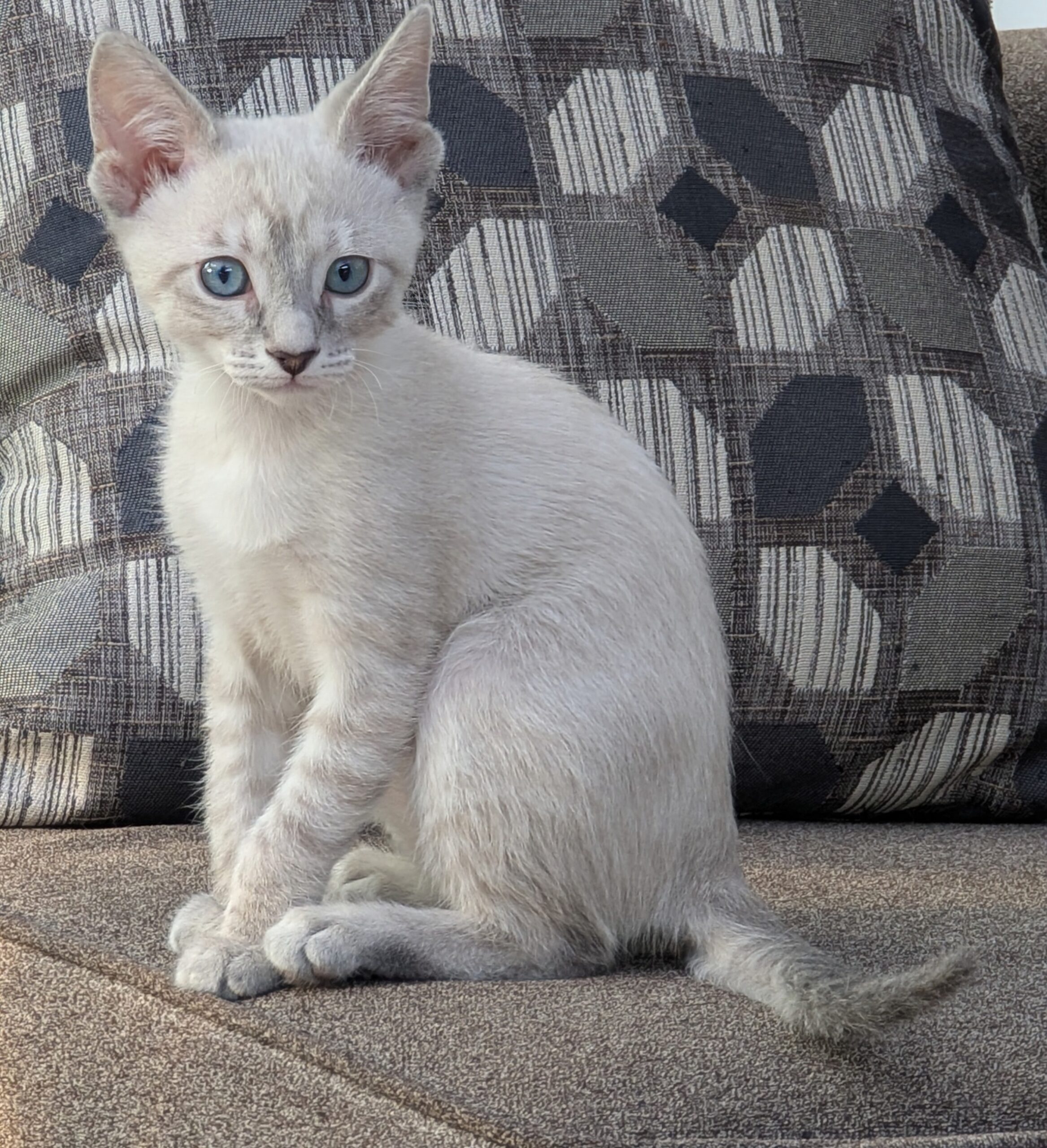 Endora is a beautiful Siamese mix with a sweet and loving personality, born on May 11, 2025, in a dumpster that was about to be emptied. She and her siblings were rescued just in time at only four days old and brought to Kindred Kitties for bottle-feeding and care with their incredible foster mom.