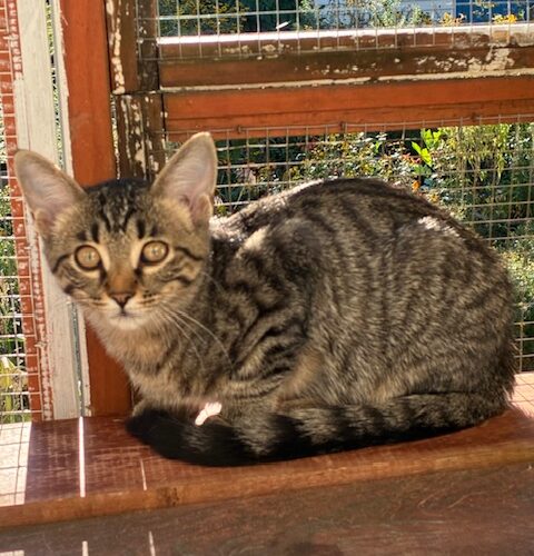 Don’t let her petite size fool you—Evelyn is packed with personality! Brave, spunky, and full of sass, she keeps up with her bigger siblings without missing a beat. She’s quick on her paws and loves a good game of chase, but she also has a sweet side, curling up close once she’s all tuckered out. Evelyn’s fearless heart and cuddly spirit make her a true standout.