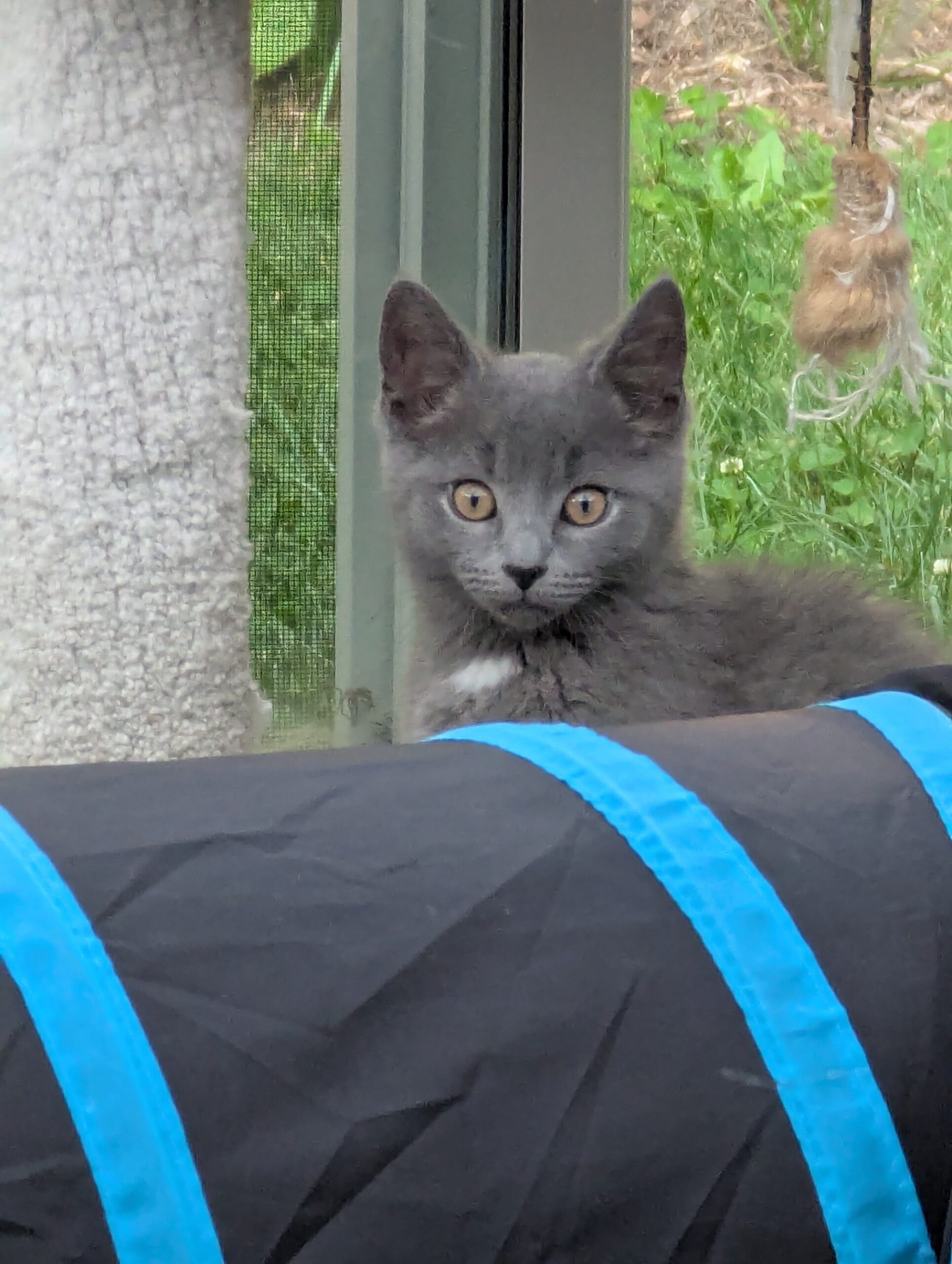 When their mama didn’t come back, Felicity and Francis’ journey with Kindred Kitties began. A camera was set up to watch for her return, but after a long absence, these tiny two-week-old babies were brought into Kindred Kitties’ care. A loving foster welcomed them in and bottle-fed them around the clock, giving them the chance to grow and thrive.