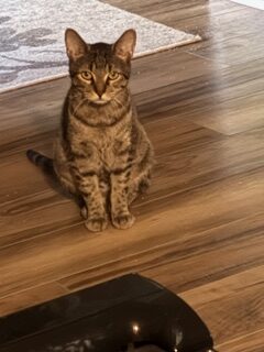 Harriet is spayed, up to date on vaccines, and uses the litter box perfectly. She’s shy, independent, and a little mysterious—but give her time and tube treats, and she’ll reward you with her quiet trust.
