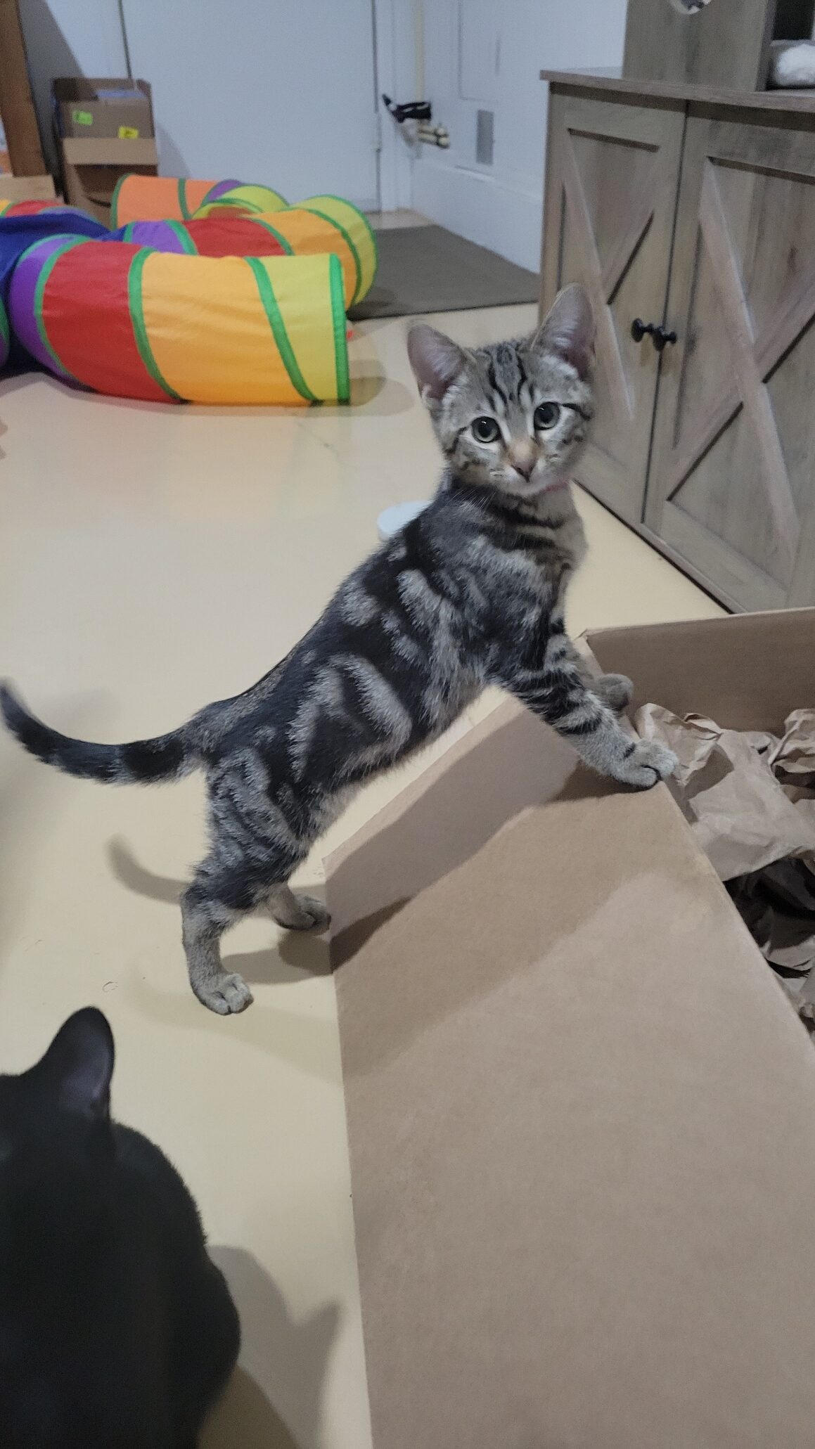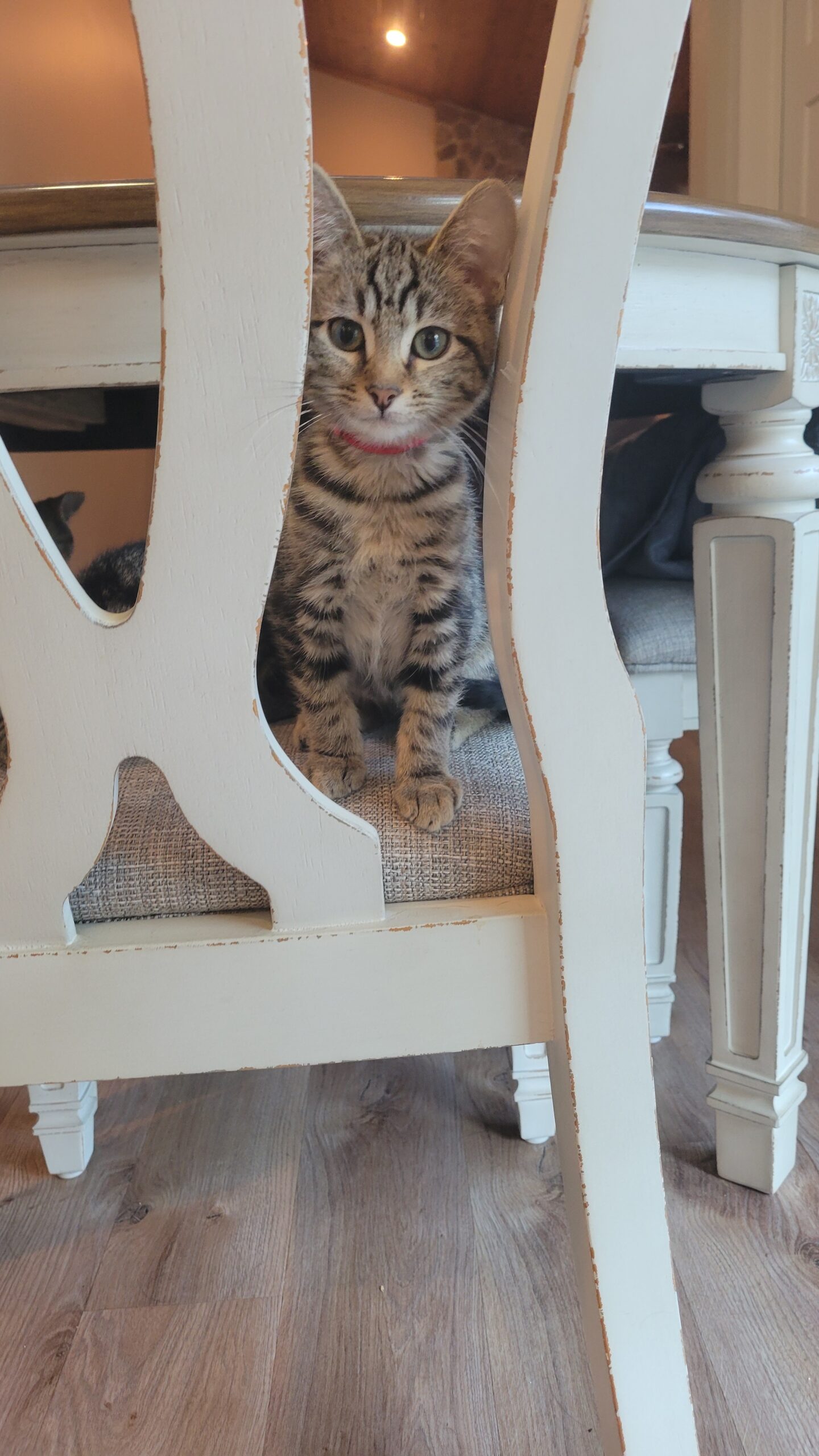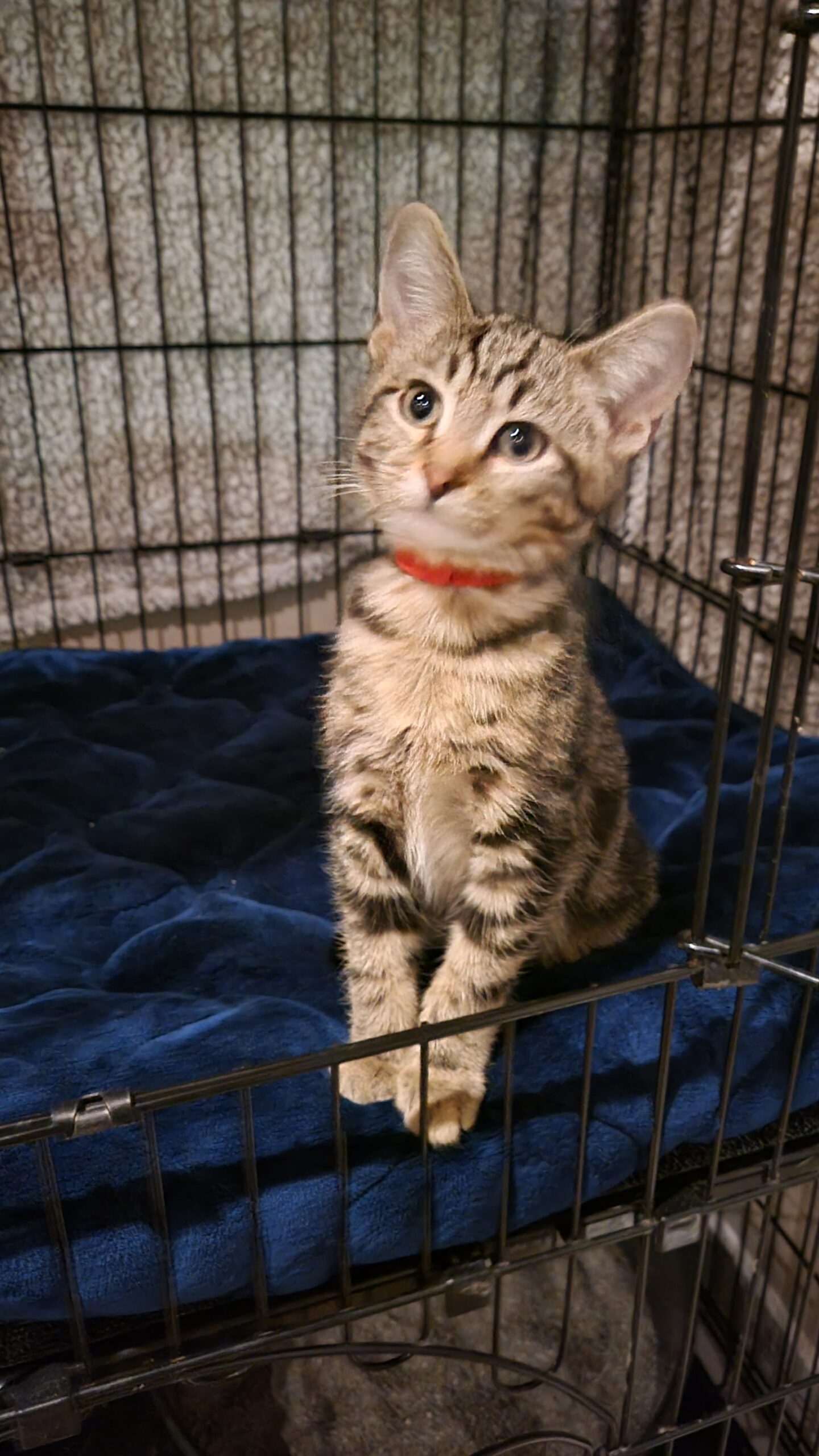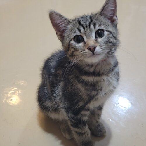 Harry is a precious tabby brown kitten who has a unique personality! Harry and his siblings have an estimated birthdate of 05/09/2025. They came into their foster home from the outdoors and are transitioning into becoming indoor kittens. Harry is learning every day to be more social and affectionate. He wants to be around his foster family, but is learning to be touched and loved. He will be timid and hesitant when meeting new people, but over time, he will gain your trust. He needs a forever home that will be patient and willing to work with him on his terms. Harry enjoys being with his siblings and always finds new things to do and places to explore with them. He loves climbing kitty trees and playing with kitty wands (he's a super-fast, crazy kitty when he plays)! Has a great appetite and loves kitty treats. Harry knows his foster mom’s voice and comes running every time she calls! Harry gets along with dogs and other cats. It is recommended that Harry be adopted with one of his siblings (Haley, Hugh, Holly, Henry, Harley) to help in the transition to his forever home and so he has a lifetime buddy, as he continues to grow into a sweet boy.