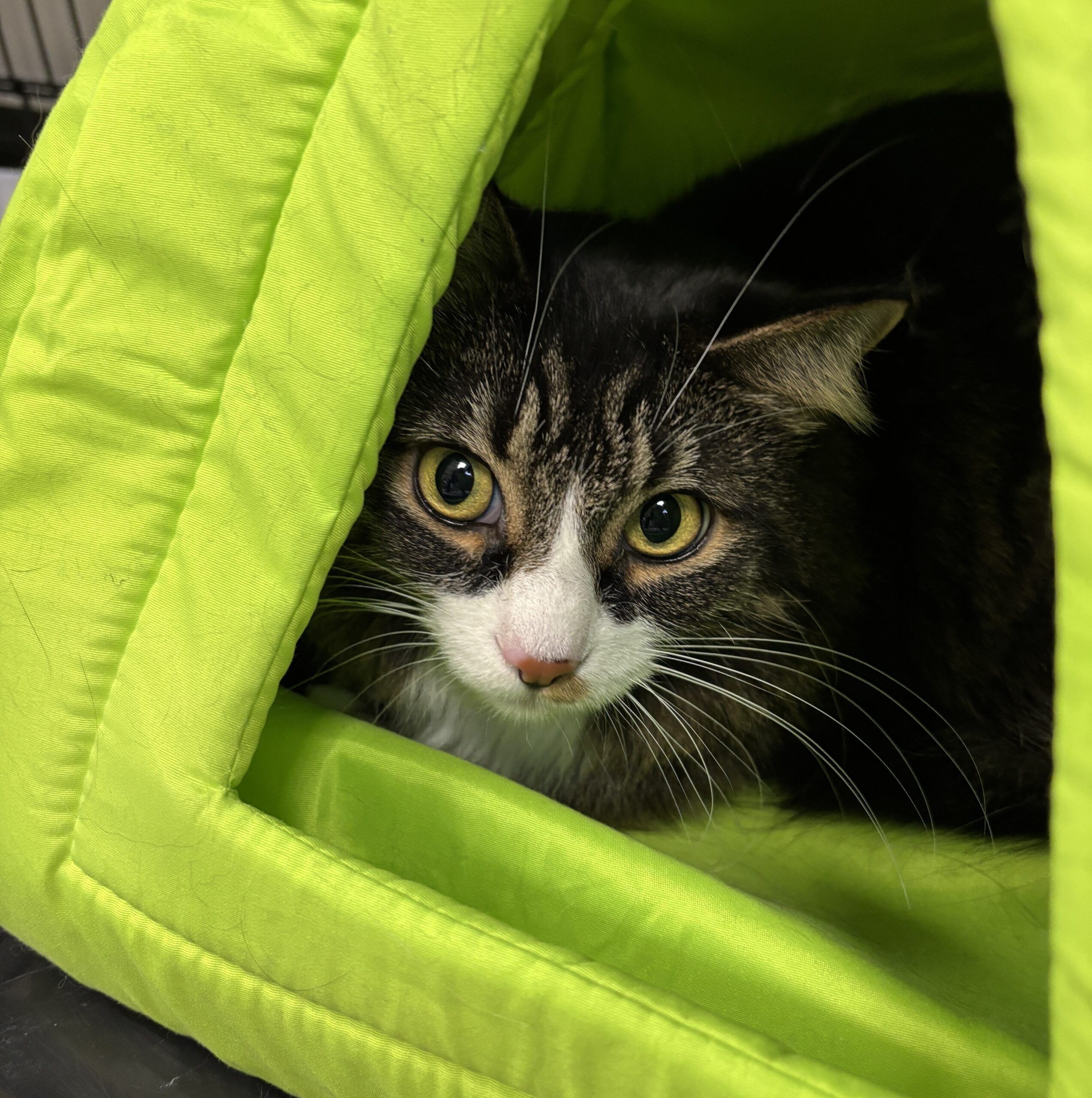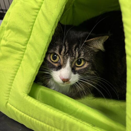 While Mabel would be delighted to go home with her sister Molly Mittens, she would also do wonderfully on her own or with another friendly feline. She’s ready for a loving forever home where she can feel safe, comfortable, and cherished all over again.