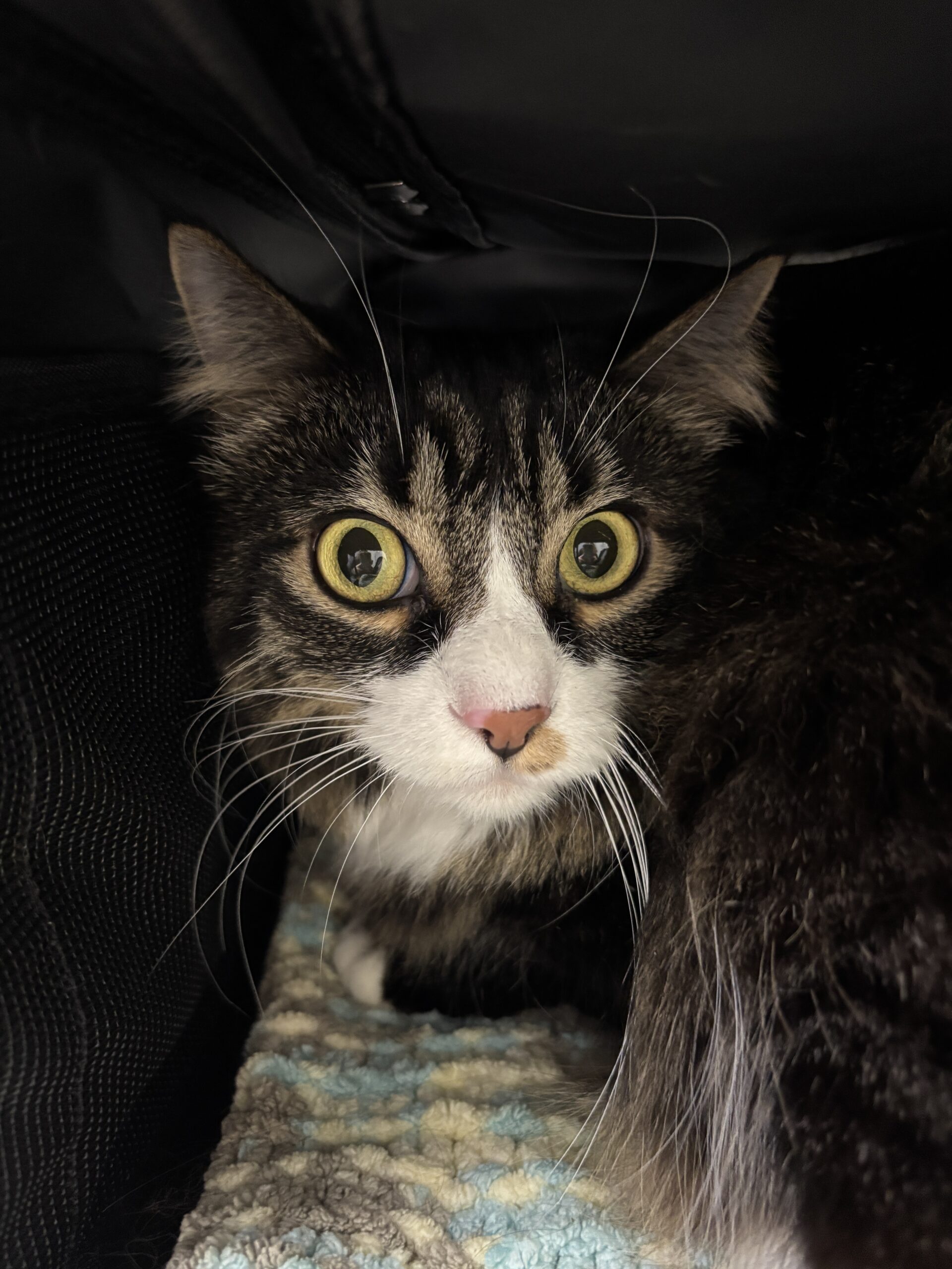 Mabel was recently returned to Kindred Kitties, along with her sister Molly Mittens, through no fault of her own. Their beloved owner had to move into assisted living, and we were happy to welcome these sweet sisters back into our care.