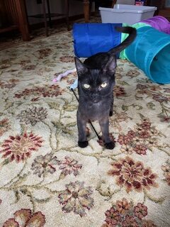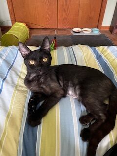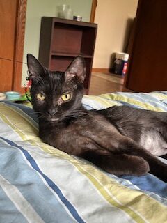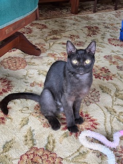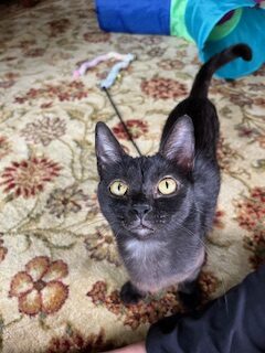 Juno is affectionate and loves to snuggle up with her foster. She’s playful, curious, and full of personality—especially when she chirps while following her human around the house! She’s also a pro at using the litter box and enjoys staying busy throughout the day.