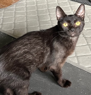 This gorgeous girl with an estimated birthday of 09/15/24 is a total sweetheart with a striking black smoke coat—a rare and beautiful coloring where the tips of her fur are black, fading to silvery gray near the skin. Pictures don’t do her justice!