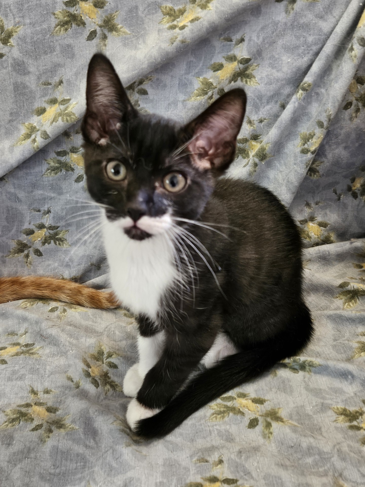 Inky (DOB 6/17/25) is a pretty chill kitten who's never minded being picked up, cuddled, and even kissed by his foster Mom. Just because he's chill though, doesn't mean he's not playful. He was the first of his litter to chase the wand toy around, and he loves to play with loose toys and, of course, his siblings. When he done playing, he often will sit in his foster Mom's lap for a bit.