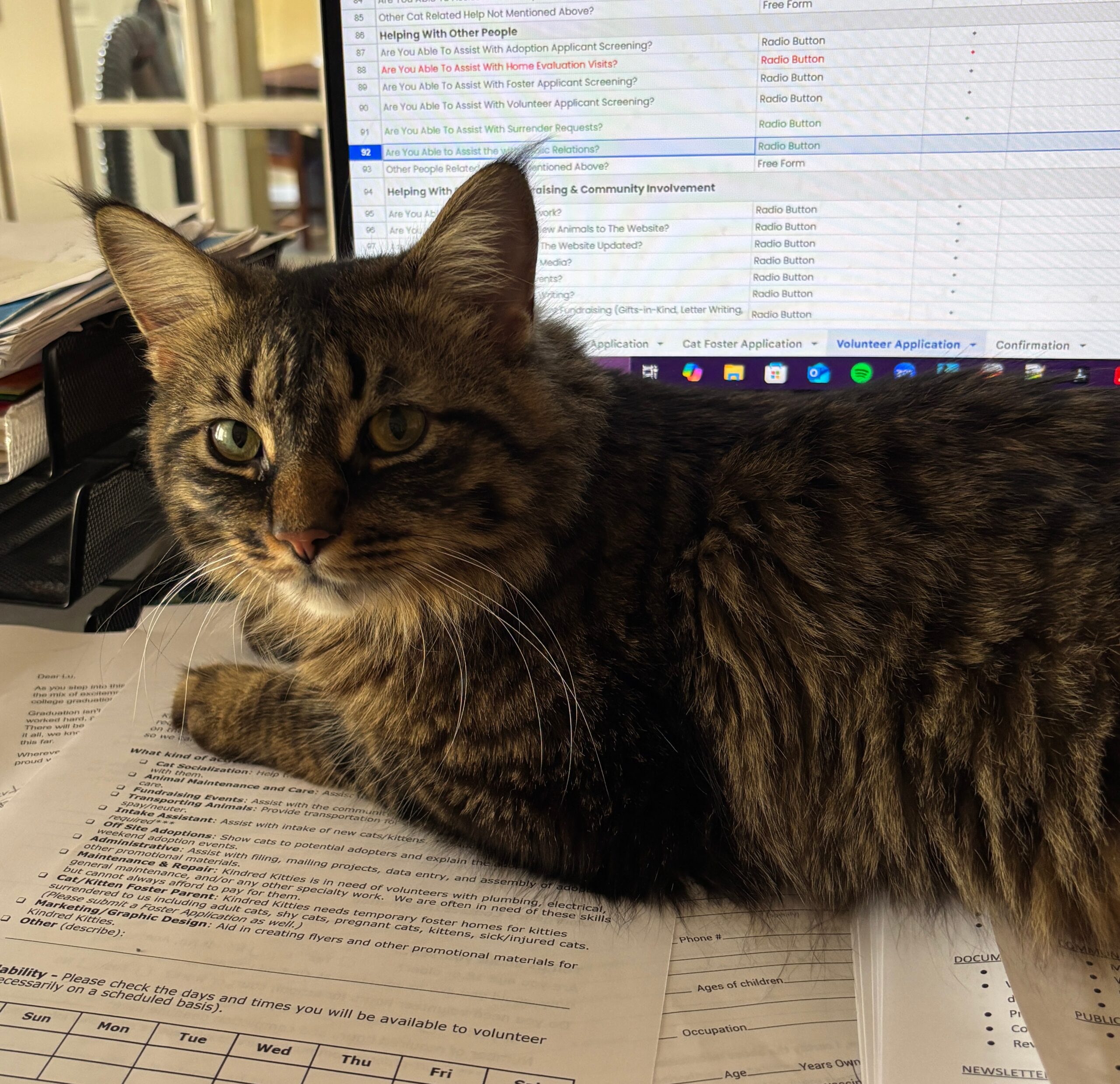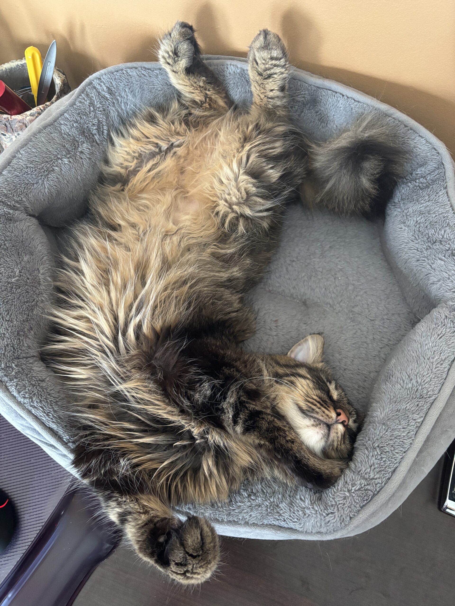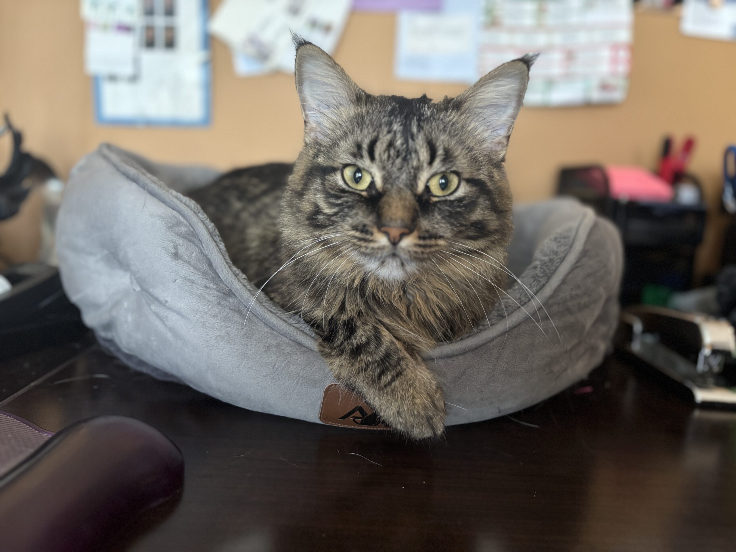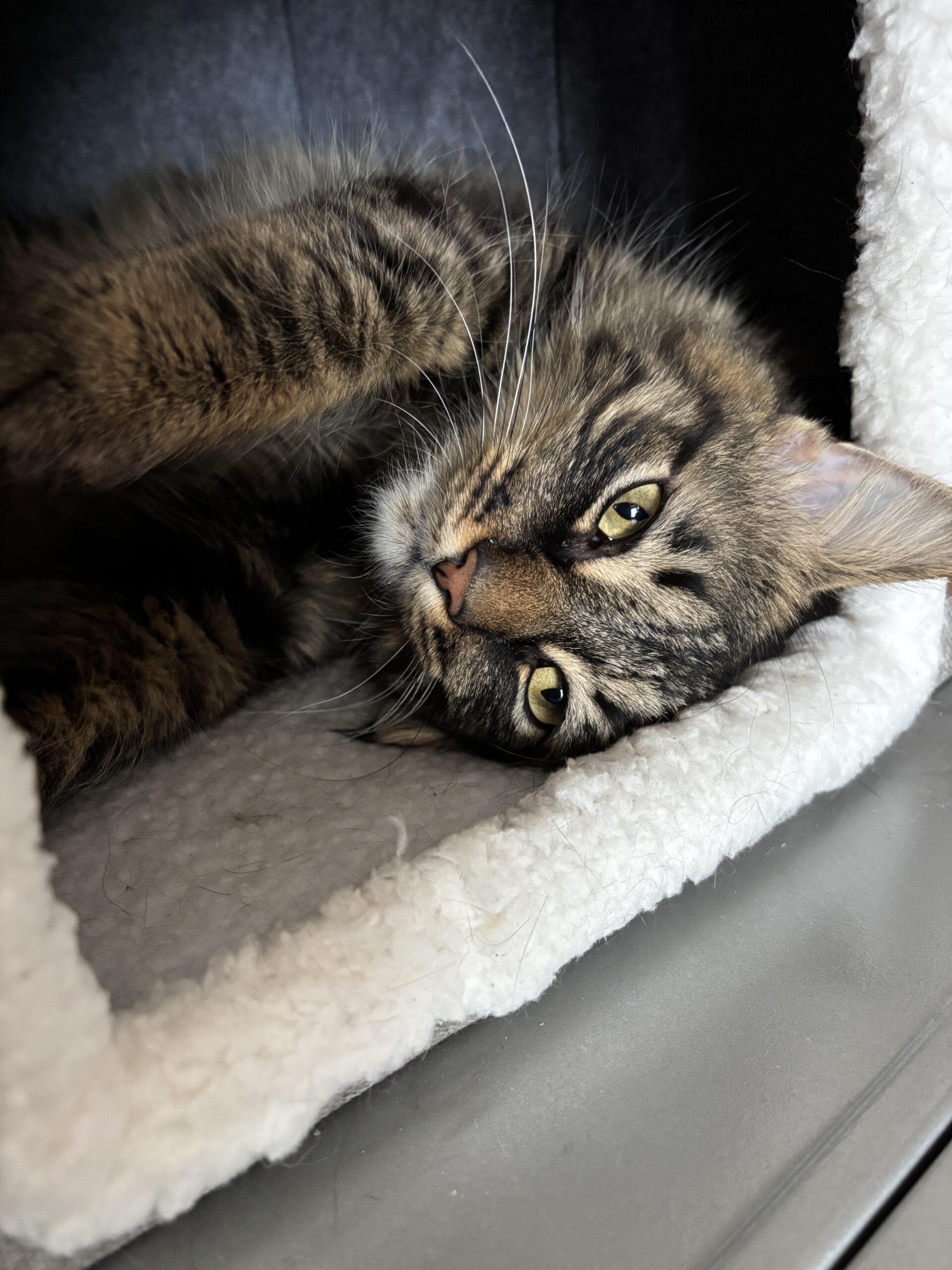 He loves pets, and if you work from home, Stewart makes a fantastic feline coworker—often snoozing nearby in his bed, keeping you company. He’s looking for a quiet, loving home where he can relax on the couch and just hang out.
