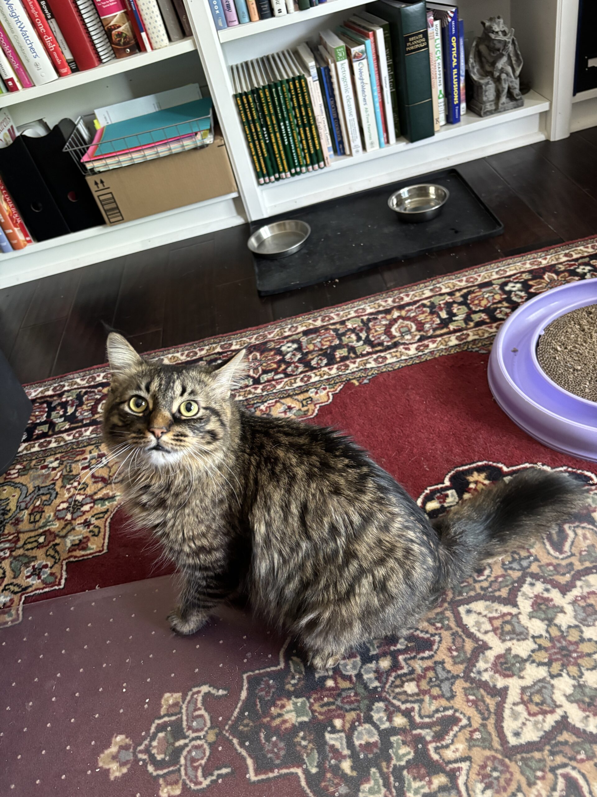 This handsome brown long-haired tabby boy has an estimated date of birth of 01/01/2024 He has a cute bobbed tail, and is as charming as he looks. Stewart is a friendly, easy-going guy who’s all about the chill life. He gets along well with the other cats and dog in his foster home and enjoys a laid-back vibe.