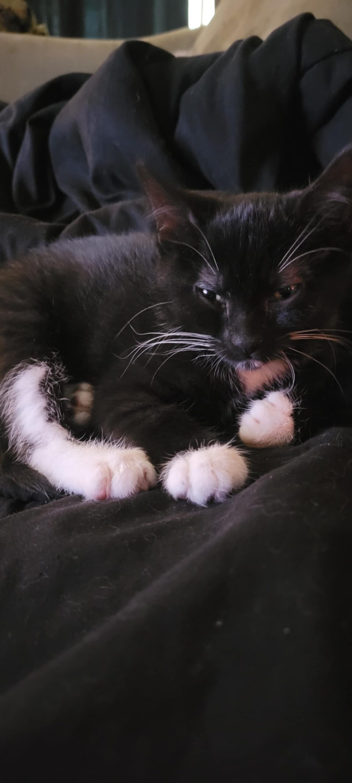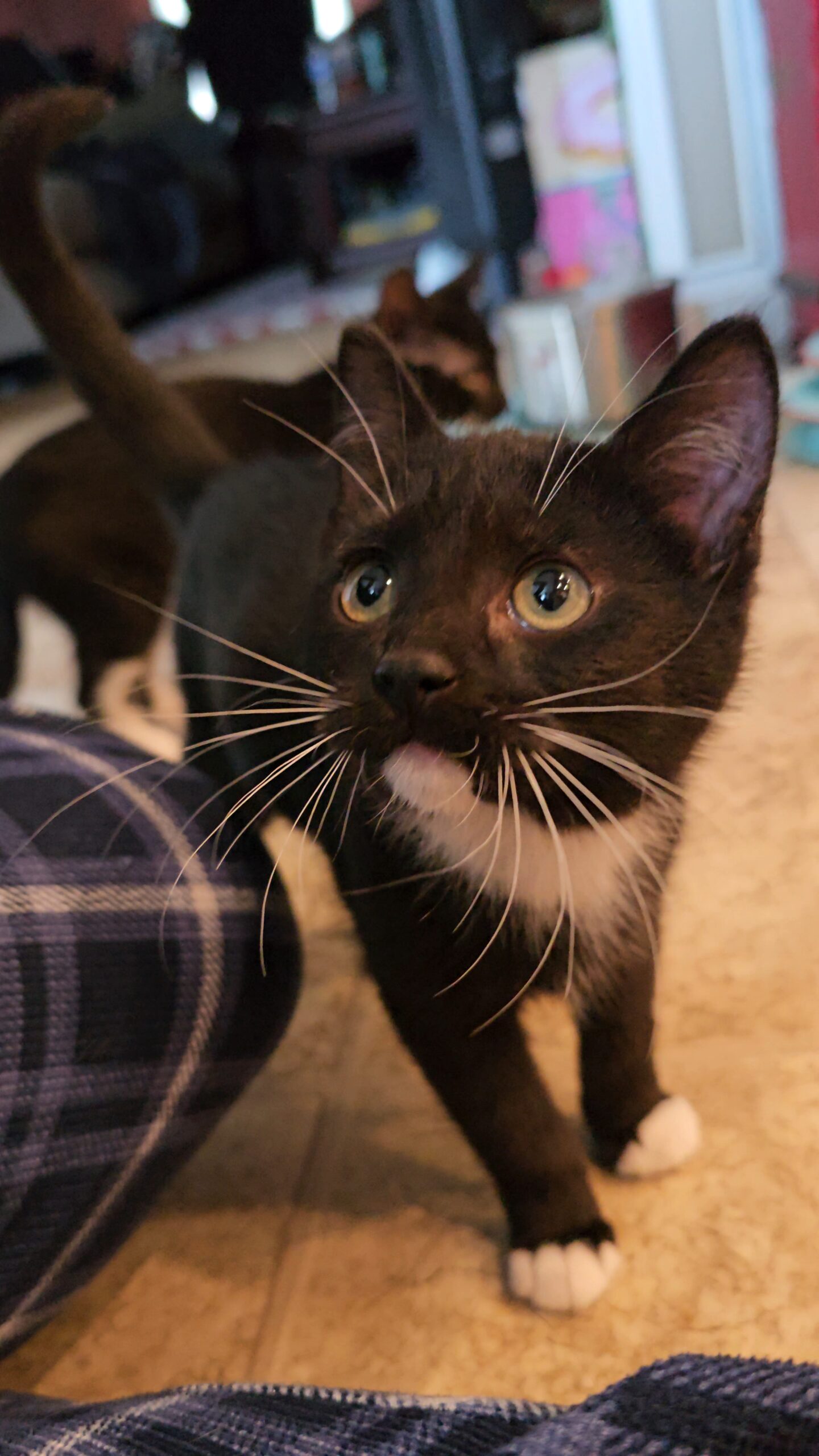 Meet Truffle, she is an adorable black and white female kitten with a birthdate of 05/17/2025. She is a whirlwind of energy and playful antics! This little furball is always up for a game, whether it's chasing a toy, wrestling with a sibling, climbing the cat tree, or zooming past you. She would thrive in a home with an active family who can provide plenty of playtime and opportunities to explore. She is guaranteed to keep you entertained with her playful spirit and infectious enthusiasm!
