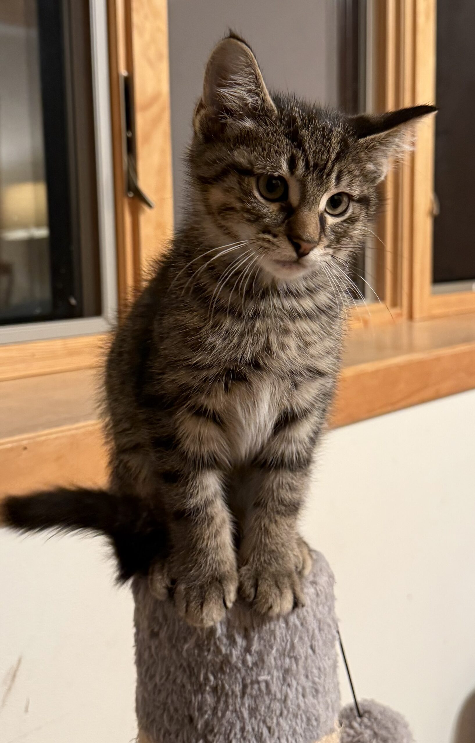 I’m the social butterfly and love greeting everyone who walks through the door. I’m always ready for playtime, climbing adventures, and lap snuggles. If you sit down, there’s a good chance I’ll hop right into your lap. I’m brave, friendly, and love being part of the action — the perfect joyful companion for any home.