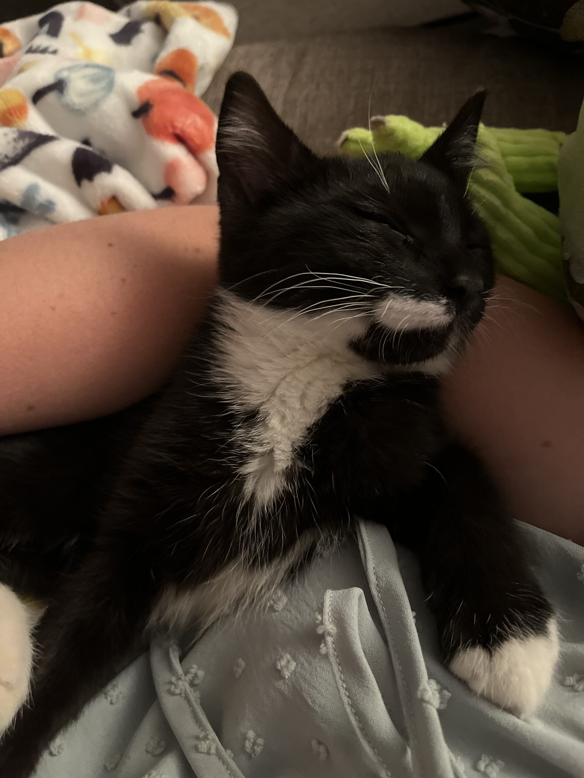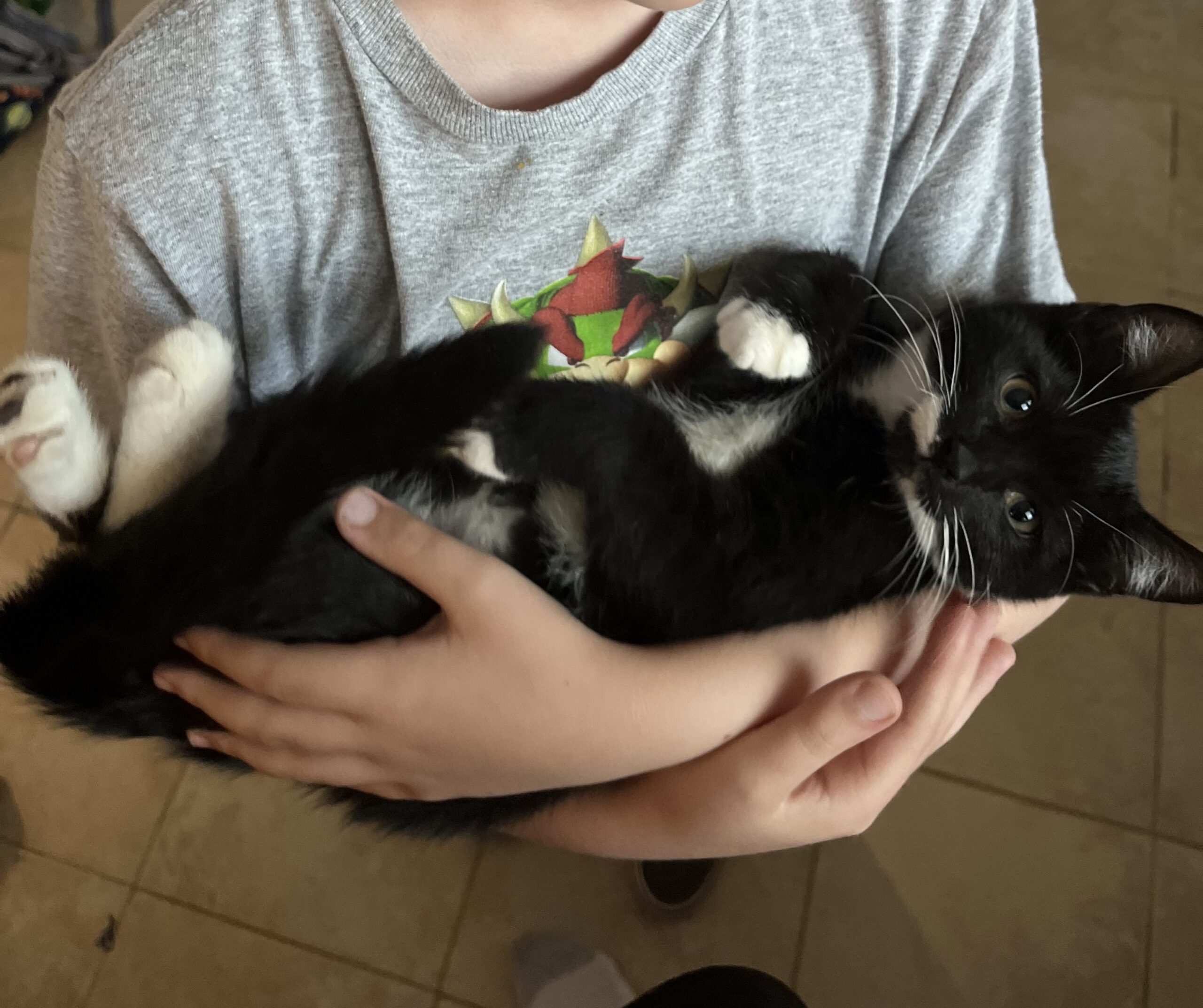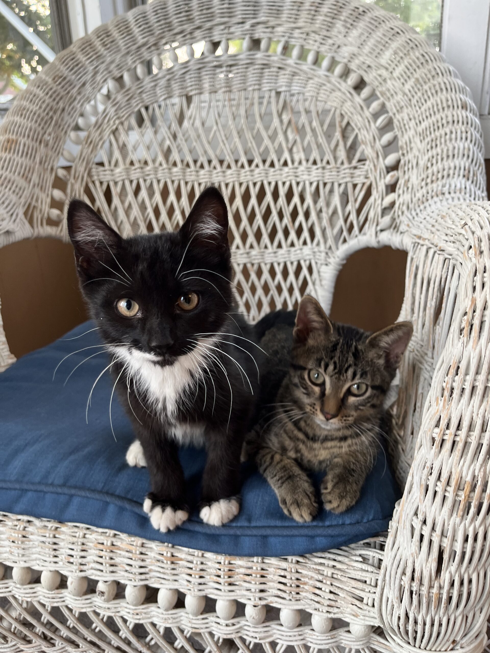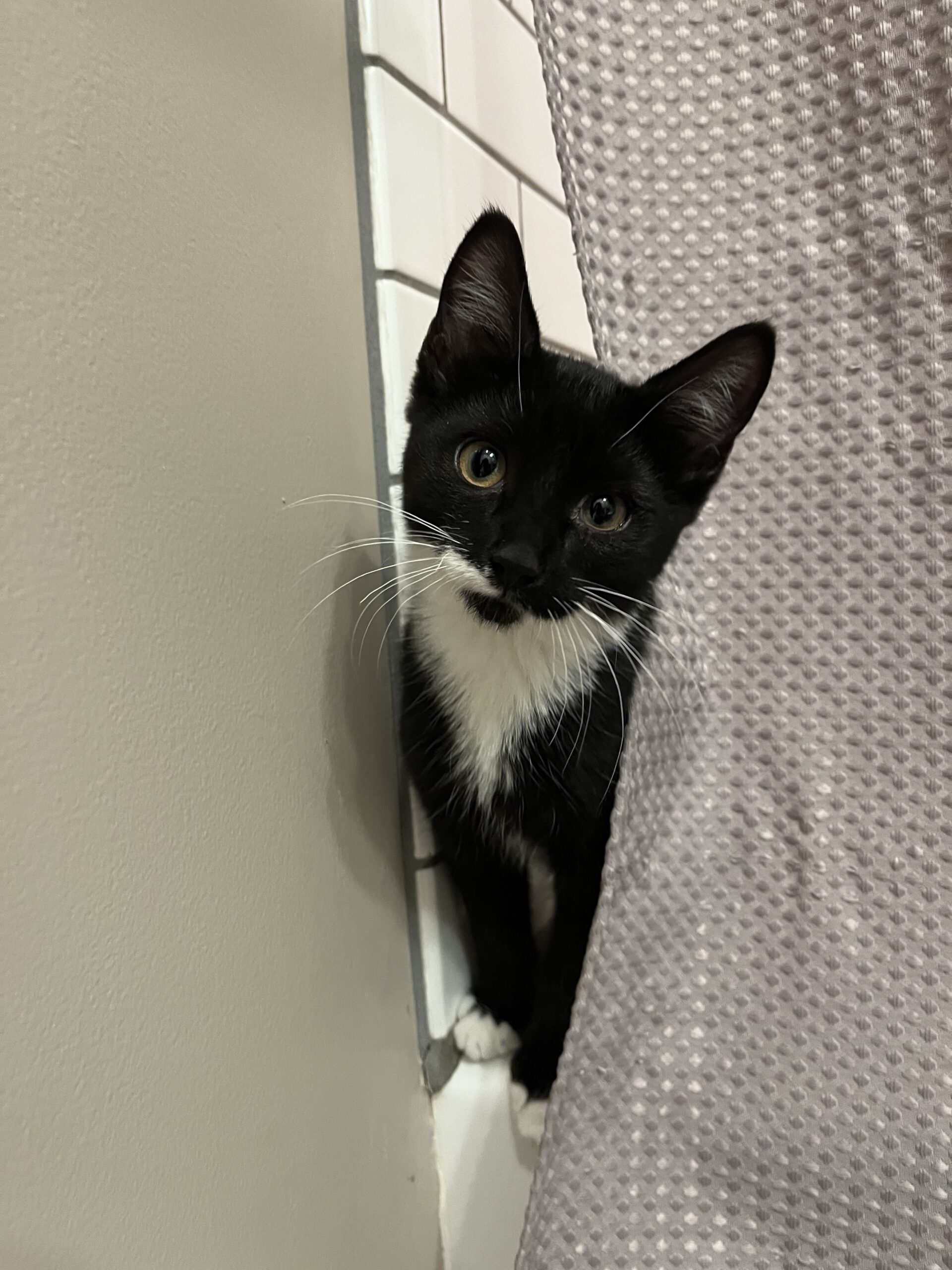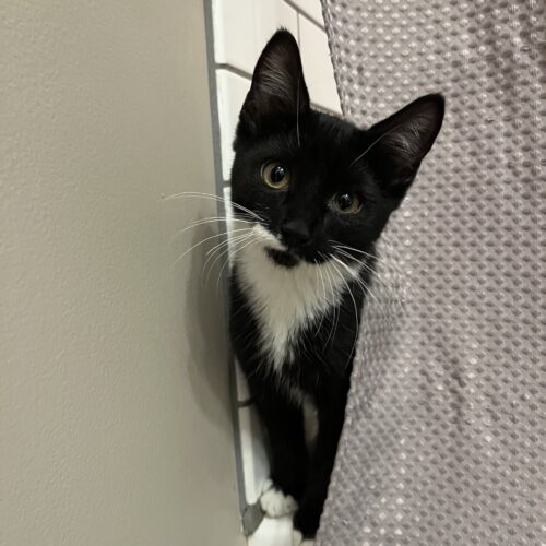 Winnie is a spunky little girl with a big motor. She LOVES to show affection and will let you know with her sweet meows when she needs a snuggle. It didn’t take her long at all to warm up to other cats. She loves to play and even entertains herself for hours chasing and carrying cat toys around the house. This sweet little cuddle bug is ready for her forever home! Winnie needs to be adopted with her sibling, Leo as they are a bonded pair.